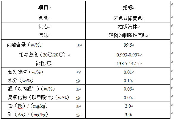 丙酸存在于發酵物中。在白酒中8-24mg/L,濃香型白酒中含量偏高。本制品在白酒與乙酸等酸類協調配合,使酒體后味有濃感、甜味、具有后勁。